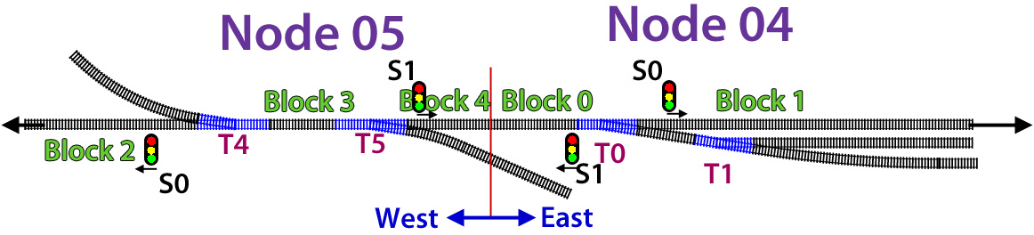 This signal faces west and controls east-bound traffic from Node 05, Turnout 4 to Node 04, turnout 0.